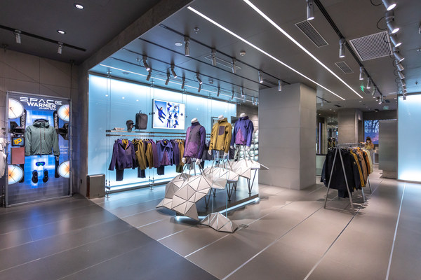 一層的DUALIS都市機(jī)能系列中心裝置以代表城市性的水泥裝置,配合燈光帶閃爍的呼吸節(jié)奏,借此尋找都市與自然的差異平衡點(diǎn)?;贒UALIS系列打造的DESCENTE X Paul Smith聯(lián)名合作系列作為秋季限定系列,獨(dú)特的色彩美學(xué)賦予了空間全新的藝術(shù)張力。