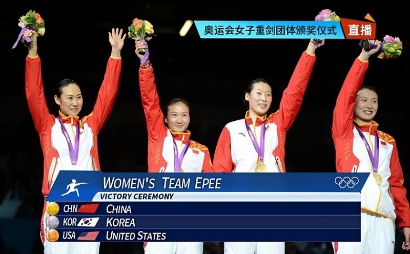 (2012年倫敦奧運會女子團體重劍冠軍頒獎合照)