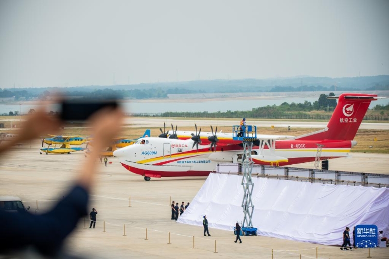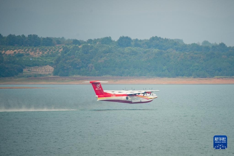 9月27日,“鯤龍”AG600M在進行飛行投水功能演示。
