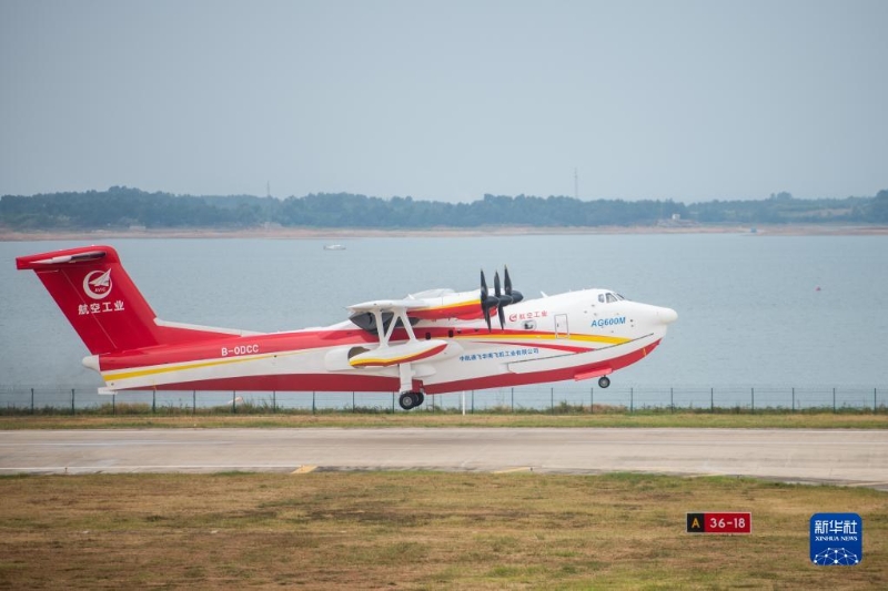 9月27日,“鯤龍”AG600M從漳河機場滑行起飛。