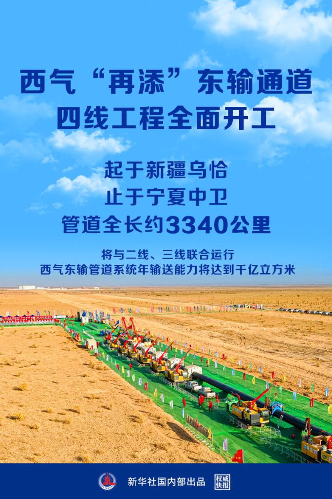 新華社北京9月28日電(記者戴小河)國(guó)家管網(wǎng)集團(tuán)西氣東輸四線工程28日正式開工,工程起于新疆烏恰縣,止于寧夏中衛(wèi)市,管道全長(zhǎng)約3340公里。