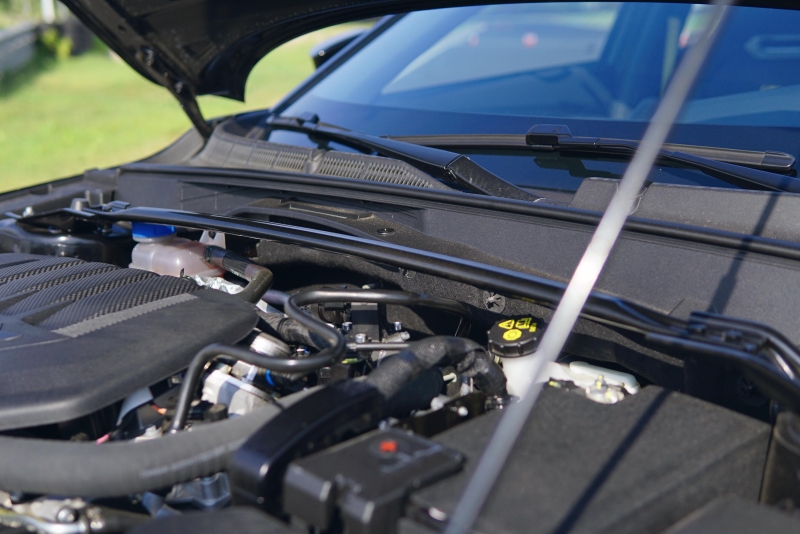 2.0T車型的發(fā)動(dòng)機(jī)艙比1.5T車型多了一根頂吧,而這也是一個(gè)同價(jià)位少見的配置。在運(yùn)動(dòng)性方面,頂吧通過在車頭左右兩側(cè)避震器塔頂之間增加剛性連接來提升車頭的扭轉(zhuǎn)剛度,從而提升車頭對于轉(zhuǎn)向的響應(yīng)速度以及穩(wěn)定性。