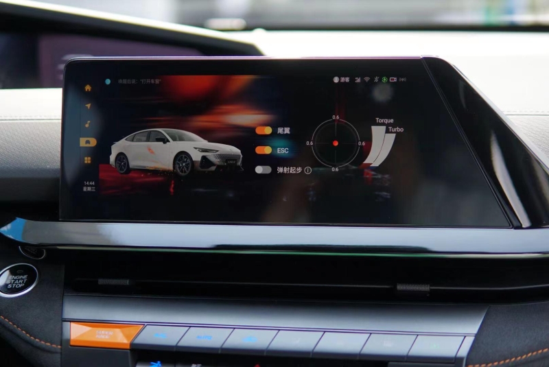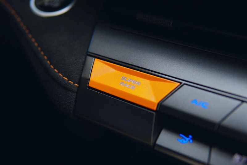最值得一提的是SUPERRACE模式,在這個(gè)模式下電動(dòng)后擾流板升起、排氣閥門打開,中控屏上開始顯示G值和渦輪增壓值,還有彈射起步的選項(xiàng),運(yùn)動(dòng)氛圍拉滿。