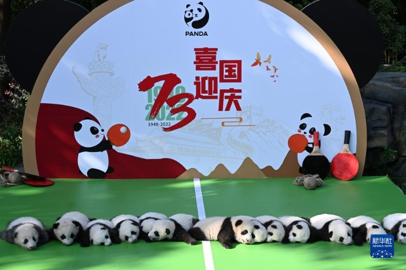 當(dāng)日,為迎接即將到來(lái)的國(guó)慶佳節(jié),成都大熊貓繁育研究基地內(nèi)十余只2022級(jí)新生大熊貓寶寶一起亮相太陽(yáng)產(chǎn)房。