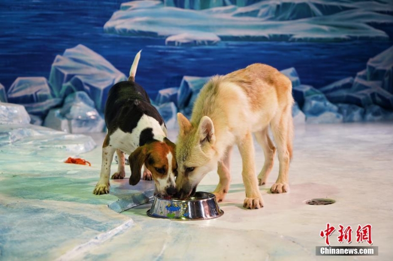 9月28日,世界首只克隆北極狼在哈爾濱極地公園和公眾見(jiàn)面。據(jù)了解,克隆北極狼的供體細(xì)胞來(lái)自北極狼“瑪雅”的皮膚樣本,代孕母體是一只比格犬。現(xiàn)在,克隆北極狼已順利過(guò)“百天”,各項(xiàng)指標(biāo)顯示均正常。圖為克隆小北極狼“瑪雅”和比格犬“媽媽”共同進(jìn)食。 中新社記者 孫漢侖 攝