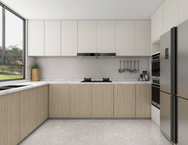 廚房地面鋪貼蒙娜麗莎國風(fēng)·時(shí)光系列荏苒陶瓷大板,與客餐廳地面保持一致,使家裝的整體性更強(qiáng)。墻面采用蒙娜麗莎國風(fēng)·時(shí)光系列云杉陶瓷大板,以白色為基底,點(diǎn)綴若影若現(xiàn)的砂礫感,素凈清雅卻更顯繽紛,營造出輕盈通透的活力空間。寬敞的窗戶設(shè)計(jì)讓空間采光更充足,透過玻璃窗還能欣賞外面的風(fēng)景,給餐廚生活增添了幾分樂趣。
