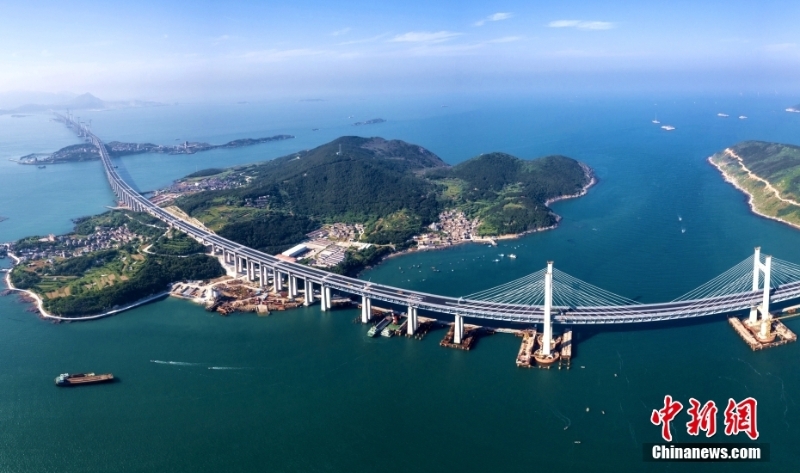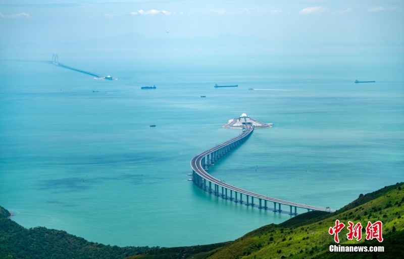 資料圖為2018年7月17日,從香港大嶼山向西拍攝的港珠澳大橋雄姿??傞L約55公里的世界最長跨海大橋?qū)⑾愀邸拈T、珠海三地人流、車流、物流更加緊密地聯(lián)系在一起。中新社記者 張煒 攝