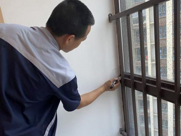 工程人員張永強發(fā)現(xiàn)窗邊滲水并做好標記