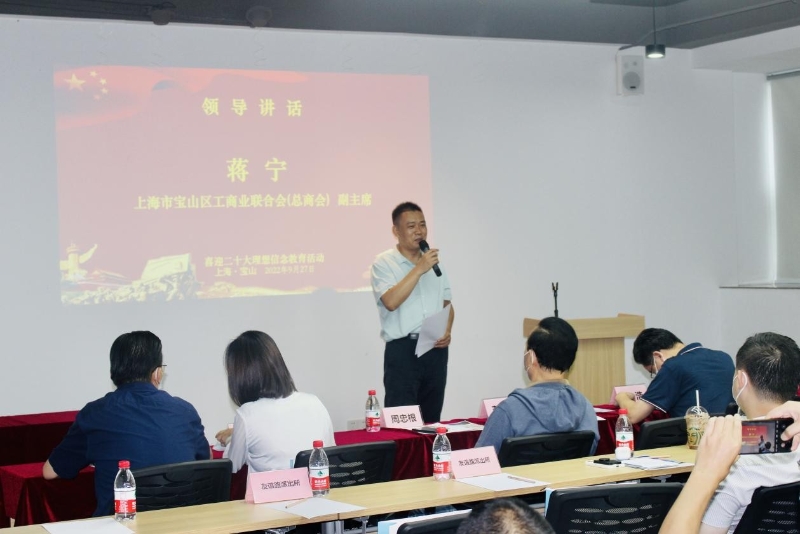 9月27日下午,由上海市寶山區(qū)工商業(yè)聯(lián)合會主辦,寶山區(qū)工商聯(lián)青年創(chuàng)業(yè)者聯(lián)誼會(青商會) 、杭州市蕭山企業(yè)駐滬商會聯(lián)合主辦,火炬孵化上海創(chuàng)靜企業(yè)管理有限公司承辦,上海市公安局寶山分局友誼路派出所協(xié)辦的上海市寶山區(qū)工商業(yè)聯(lián)合會喜迎二十大理想信念教育活動在火炬城市峰匯如期舉辦。