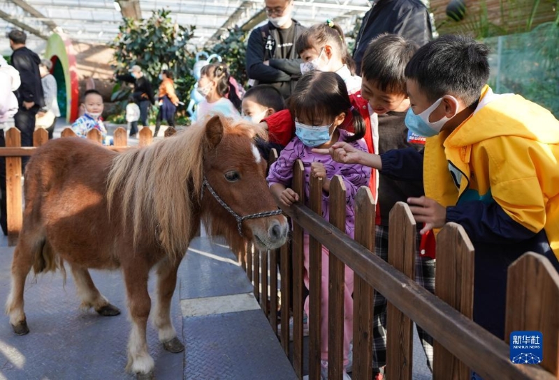 10月4日,小朋友們在北京農(nóng)業(yè)嘉年華園區(qū)里觀賞果下馬。