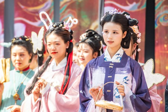 國慶假期,重慶多地推出系列國風(fēng)國潮活動,傳統(tǒng)戲劇表演、以漢服文化為主題的巡游活動吸引著年輕游客。25歲的漢服愛好者樓蘭告訴記者:“這一次的磁器口巡游活動,我們4位漢服表演者專門按照《簪花仕女圖》中的裝扮來打造,希望能夠還原出古人華貴、優(yōu)雅的服飾妝容?!?/p>
