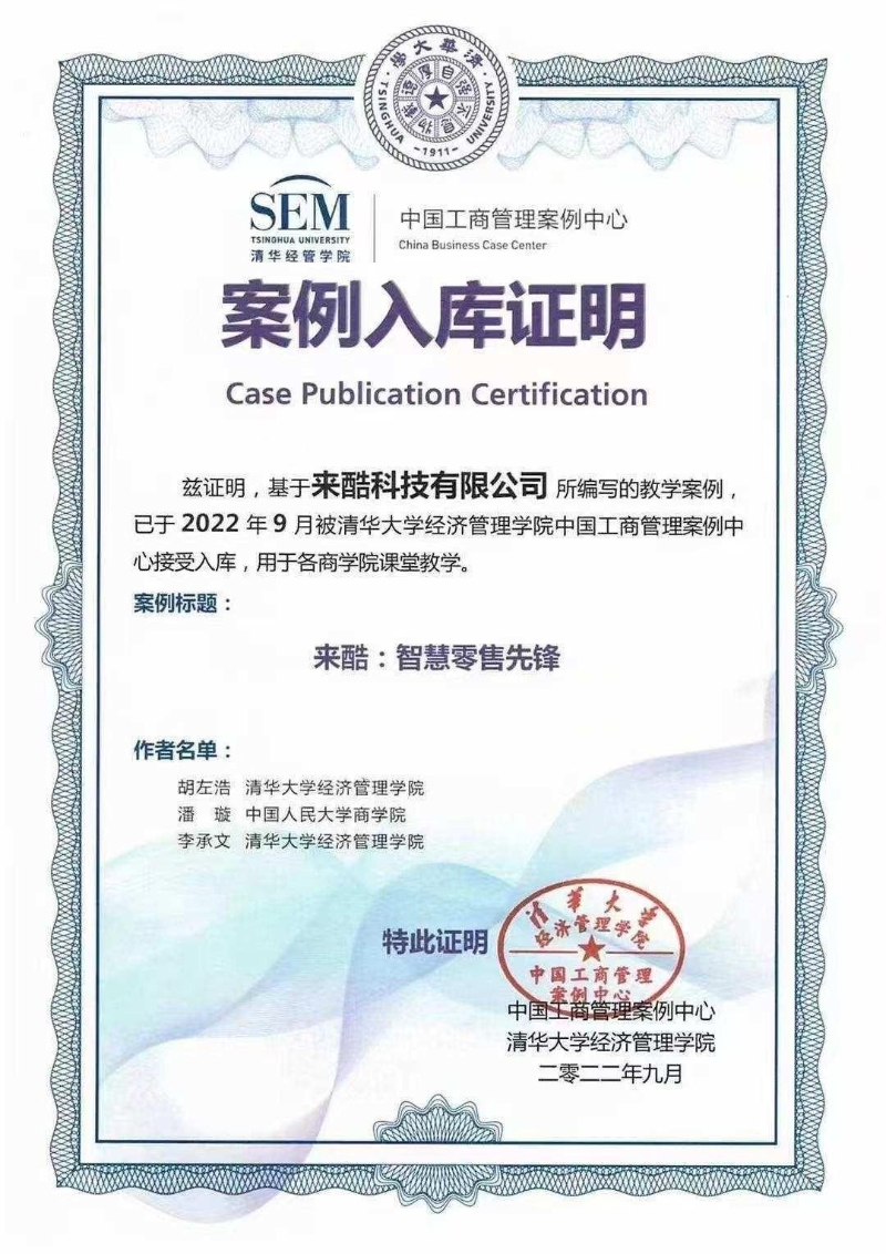 近日,基于來酷科技有限公司所編寫的《來酷:智慧零售先鋒》教學案例被清華大學經(jīng)濟管理學院、人民大學商學院收錄入教學案例庫,將用于各商學院課堂教學。