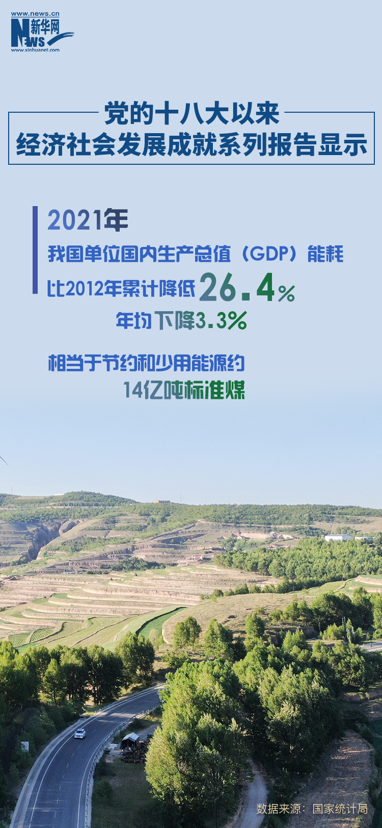 新華社北京10月8日電(記者魏玉坤)國家統(tǒng)計局8日發(fā)布的黨的十八大以來經(jīng)濟社會發(fā)展成就系列報告顯示,2021年,我國單位國內(nèi)生產(chǎn)總值(GDP)能耗比2012年累計降低26.4%,年均下降3.3%,相當于節(jié)約和少用能源約14億噸標準煤。