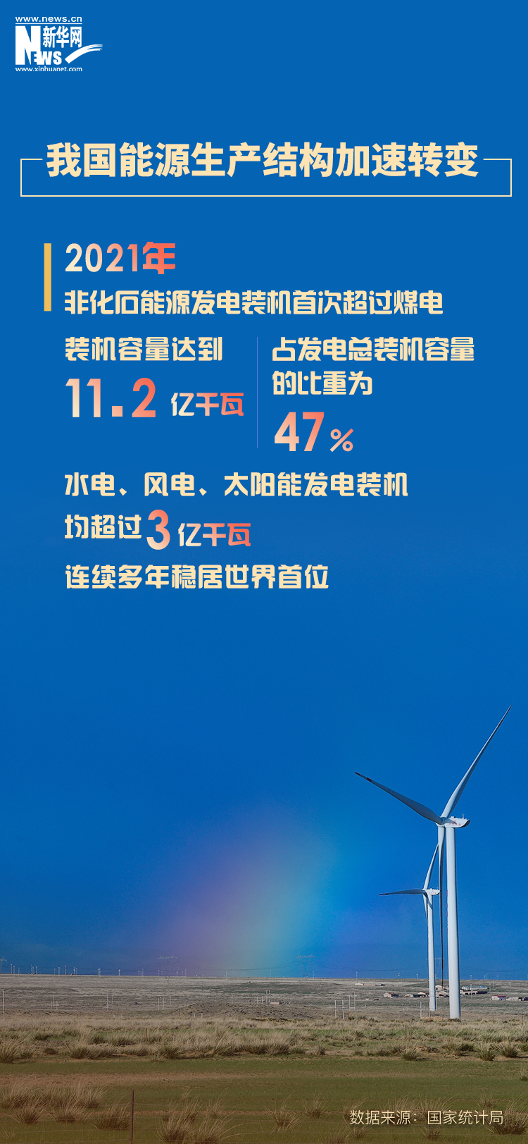 報告顯示,我國能源生產(chǎn)結(jié)構(gòu)加速轉(zhuǎn)變,清潔能源占比持續(xù)提升。2021年非化石能源發(fā)電裝機首次超過煤電,裝機容量達到11.2億千瓦,占發(fā)電總裝機容量的比重為47%。水電、風電、太陽能發(fā)電裝機均超過3億千瓦,連續(xù)多年穩(wěn)居世界首位。