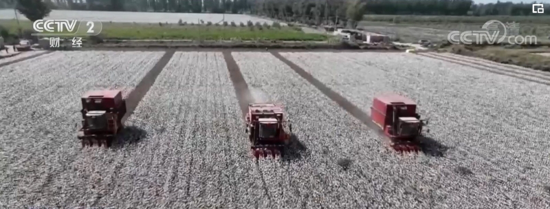 央視網(wǎng)消息:眼下,新疆阿克蘇地區(qū)740萬畝棉花迎來采收季,在塔河兩岸一望無際的棉田中,一臺(tái)臺(tái)采棉機(jī)正忙著采收新棉,一派忙碌的秋收景象。