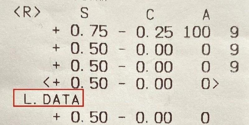 L.DATA的數(shù)據(jù)通常是3次驗(yàn)光后,最終的綜合參考值(因設(shè)備差異,有些驗(yàn)光單上用S.E.同樣表示3次驗(yàn)光最后的綜合參考值)。