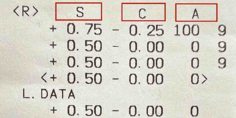 S代表球鏡,表示近視或遠(yuǎn)視度數(shù)(“+”指遠(yuǎn)視;“-”指近視),比如:+0.75代表遠(yuǎn)視75度。
