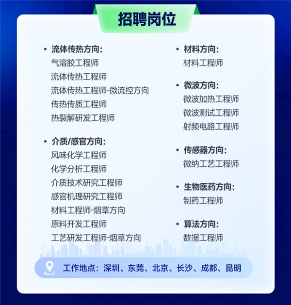 據(jù)介紹,思摩爾此次校招面向2022年11月至2023年10月畢業(yè)的全球應(yīng)屆畢業(yè)生,招聘崗位多元化,開(kāi)放了四大類崗位,包括研發(fā)方向、營(yíng)銷方向、產(chǎn)品方向、供應(yīng)鏈方向等海量職位,分布在深圳、北京、長(zhǎng)沙、成都、昆明、東莞、江門等城市。其中,技術(shù)類崗位需求占比超過(guò)70%。與此同時(shí),營(yíng)銷等非技術(shù)崗位也在持續(xù)擴(kuò)招。
