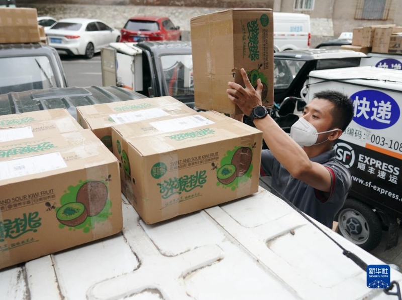 快遞員劉闊在北京市西城區(qū)陶然亭街道一處順豐速運營業(yè)點做送貨前的準備(2022年8月28日攝)。 新華社記者 張晨霖 攝