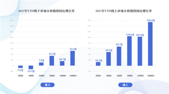 近兩年洗衣機(jī)市場消費(fèi)結(jié)構(gòu)升級態(tài)勢顯著。僅2021年“十一”期間,6K-10K價格段市場份額占比,線上由去年同期的9.4%漲至9.9%,線下由31.4%漲至35.4%;10K以上(含10K)價格段市場份額占比,線上由去年同期的3.3%漲至3.9%,線下由11.7%漲至17.0%。單純“入門級產(chǎn)品”已不能滿足消費(fèi)者的需求。