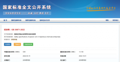 為進(jìn)一步強(qiáng)化對(duì)危險(xiǎn)化學(xué)品企業(yè)特殊作業(yè)過程安全風(fēng)險(xiǎn)的管控力度,貫徹落實(shí)中辦國辦《關(guān)于全面加強(qiáng)危險(xiǎn)化學(xué)品安全生產(chǎn)工作的意見》,應(yīng)急管理部對(duì)2014年版《化學(xué)品生產(chǎn)單位特殊作業(yè)安全規(guī)范》(GB 30871)進(jìn)行了修訂(GB 30871-2022),新《規(guī)范》于2022年10月1日開始實(shí)施。