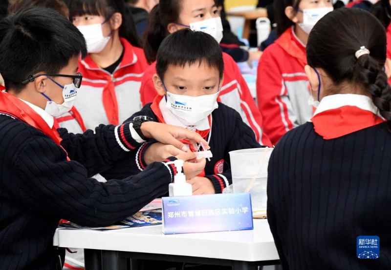 10月12日,學(xué)生在河南省科技館收看“天宮課堂”第三課時做實(shí)驗(yàn)。 新華社記者 李安 攝