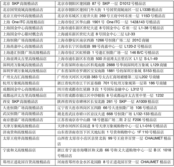 CHAUMET中國(guó)大陸高級(jí)精品店: