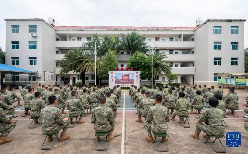 10月16日,東部戰(zhàn)區(qū)陸軍第71集團軍某旅王杰生前所在部隊組織官兵在野外駐訓(xùn)場收看中國共產(chǎn)黨第二十次全國代表大會開幕會。新華社發(fā)(劉重陽 攝)