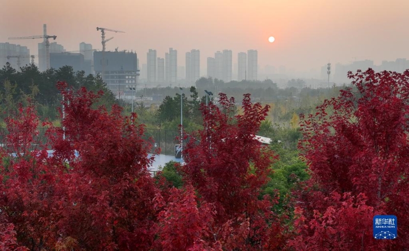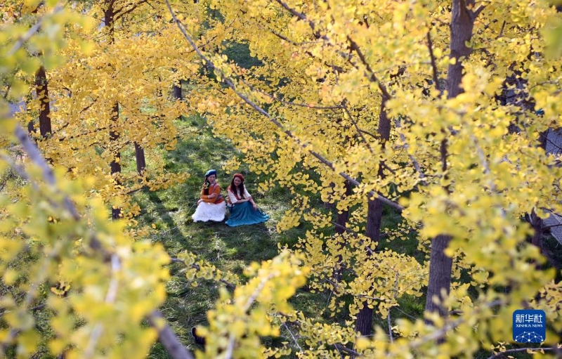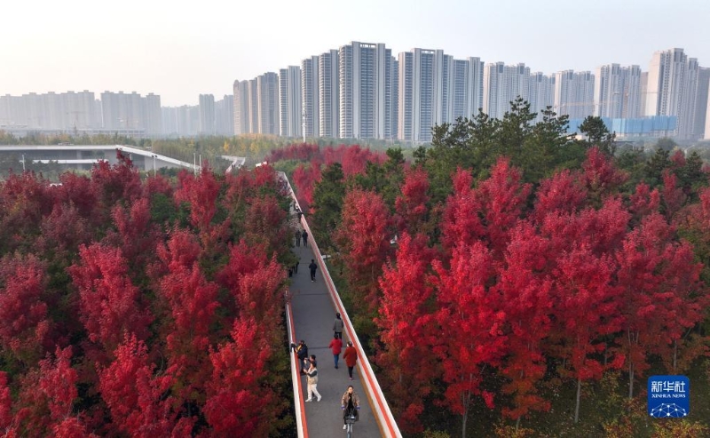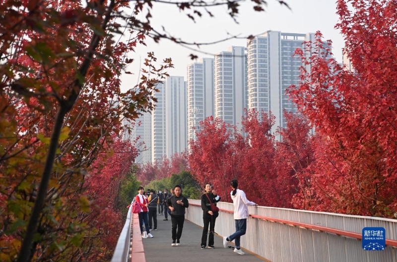 近日,古城西安市雁塔區(qū)雁南公園里秋色正濃,吸引游客賞景游玩。