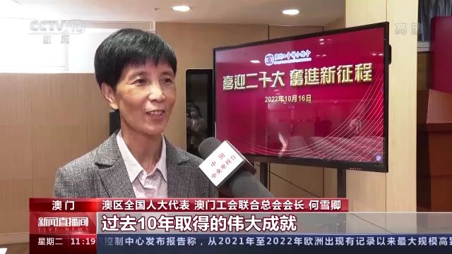 澳區(qū)全國人大代表 澳門工會聯(lián)合總會會長 何雪卿:習近平總書記在報告中全面總結(jié)了過去10年取得的偉大成就,對我們中華兒女是一個振奮人心的和巨大的鼓舞。
