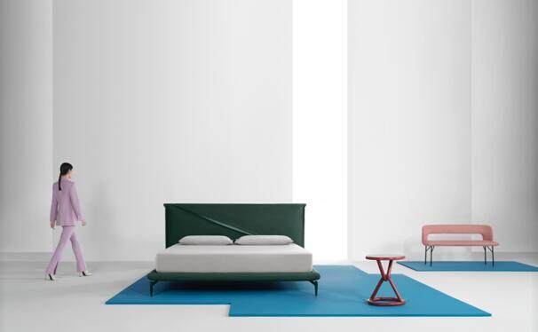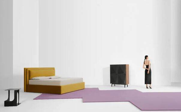 根植血液的藝術(shù)感,是記者對于這一品牌床具的最直觀印象。“比例”系列,以三個顏色形狀一致、漸次放大堆疊的床頭造型,創(chuàng)造性地模擬出日??空矶询B的場景;“摩爾”系列,將羽絨服作為床具設(shè)計的神來之筆,蓬松+方塊+灰色的視覺組合又創(chuàng)造出一個讓人意外的、冷色調(diào)的溫暖感;“羅丹”系列,更以一個切面造型如同晶石的靠背,讓你在真實與虛構(gòu)間恍惚游走。在「ROOMY如覓」的床品設(shè)計中,抱枕、綁帶、切面、裂縫、紐扣等元素被設(shè)計師天馬行空的創(chuàng)意重新解構(gòu)。熱情的、神秘的、棱角分明的、攝心奪魄的……每一張床都擁有著獨立的靈魂,等待著另一個靈魂的邂逅、認(rèn)同與陪伴。