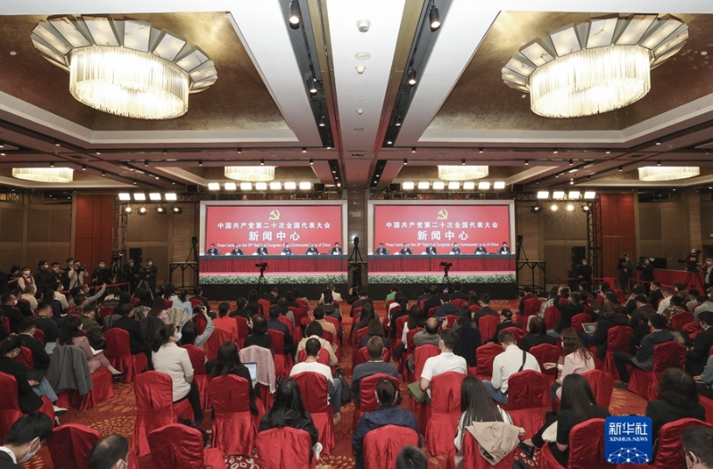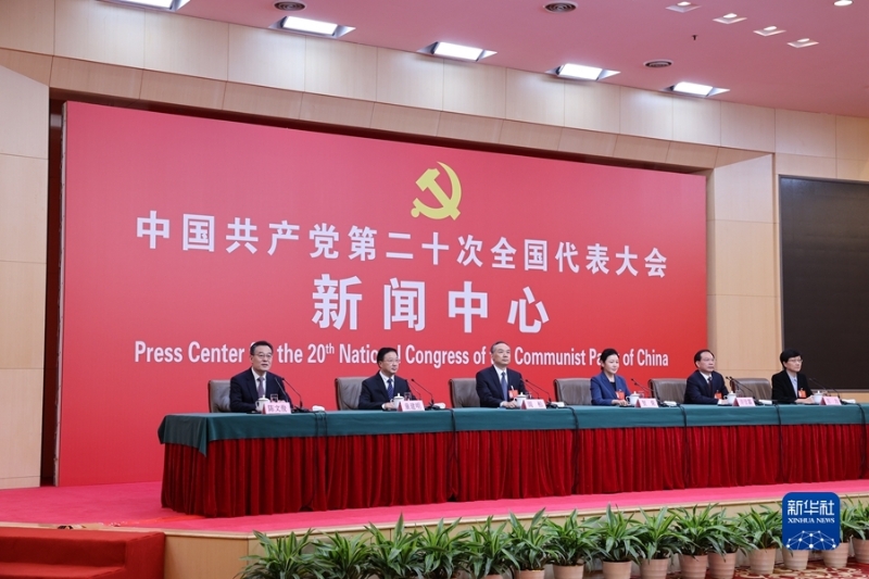 10月19日,中國共產(chǎn)黨第二十次全國代表大會新聞中心舉行記者招待會。中央政法委副秘書長訚柏,最高人民法院黨組副書記、分管日常工作的副院長、一級大法官賀榮,最高人民檢察院黨組副書記、分管日常工作的副檢察長、一級大檢察官童建明,公安部黨委委員、副部長、國家移民管理局黨組書記、局長許甘露,司法部黨組成員、副部長左力圍繞“堅持以習近平法治思想為指引 努力建設更高水平的法治中國”主題與記者交流。新華社記者 張玉薇 攝