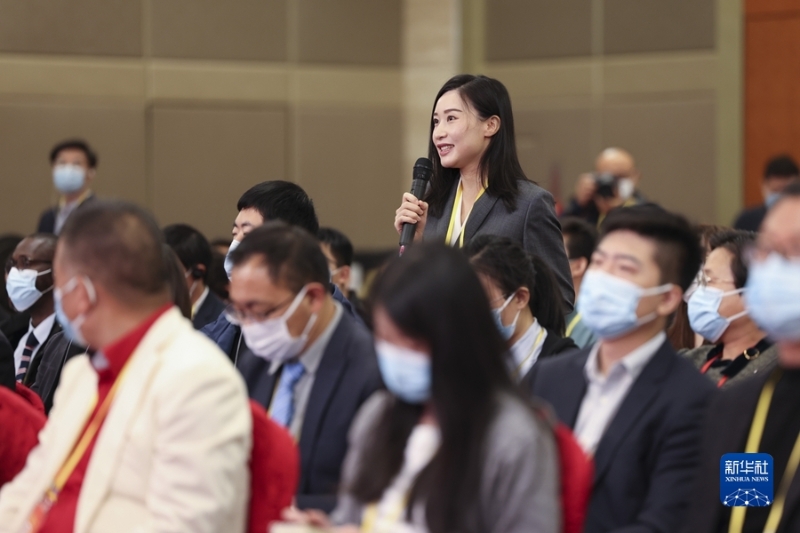 這是記者在分會場舉手提問。新華社記者 李明 攝