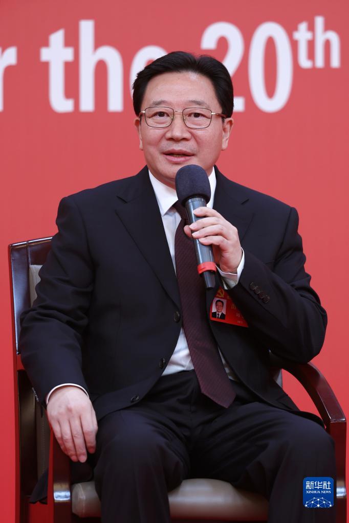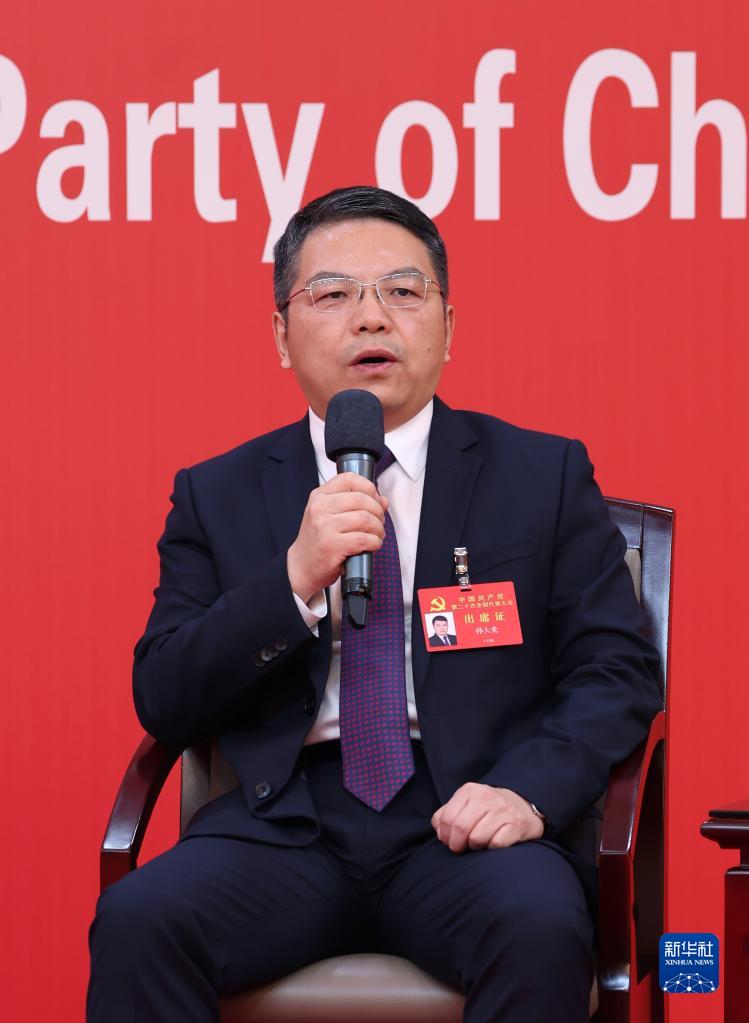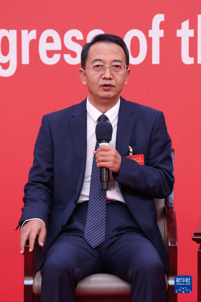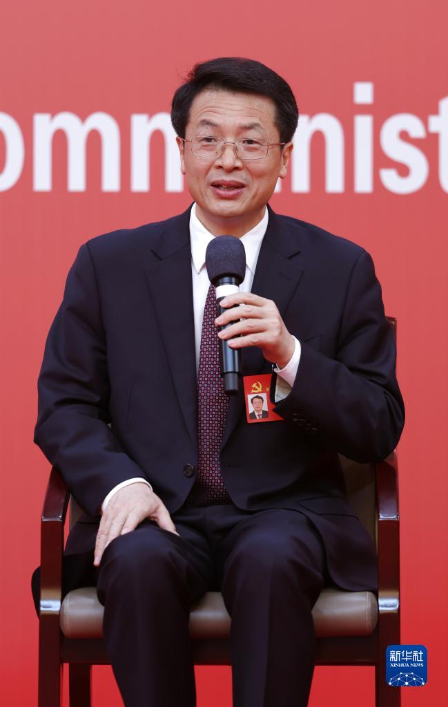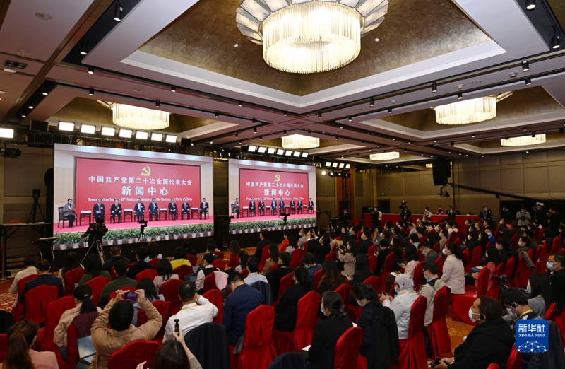 10月19日,中國共產(chǎn)黨第二十次全國代表大會新聞中心舉行集體采訪。山東、河南、湖北、湖南、廣東、廣西、海南代表團(tuán)新聞發(fā)言人出席,介紹代表團(tuán)學(xué)習(xí)討論二十大報(bào)告情況,并回答記者提問。新華社記者 陳建力 攝