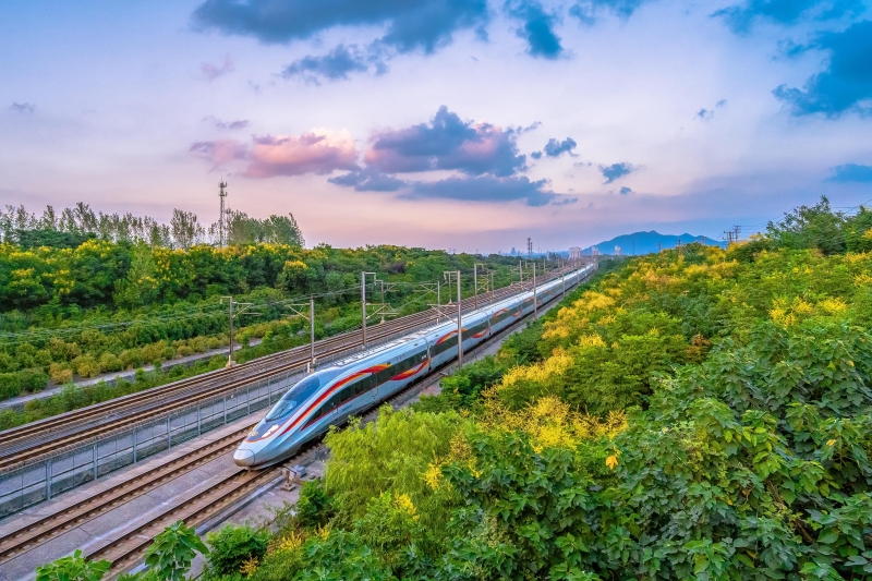 △“復(fù)興號”動車組列車在京滬高鐵江蘇鎮(zhèn)江段飛馳而過。