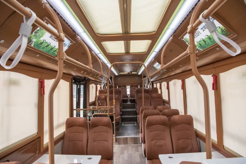 無獨有偶,今年8月,蘇州金龍專為三峽平湖萬州區(qū)量身打造的純電動雙層觀光巴士亮相山城,該車服務(wù)于三峽平湖旅游景區(qū)觀光巴士專線,為城市打造流動靚麗風(fēng)景線,融入了各種先進(jìn)技術(shù)亮點。獨特醒目的車身、城市著名地標(biāo)點的串聯(lián)、4.1米高雙層“大肚量”空間、車內(nèi)真皮座椅、360全景天窗、USB接口、定制內(nèi)飾,再配上城市文化展示櫥窗+吧臺設(shè)計,為重慶的旅游出行增添一抹亮色。