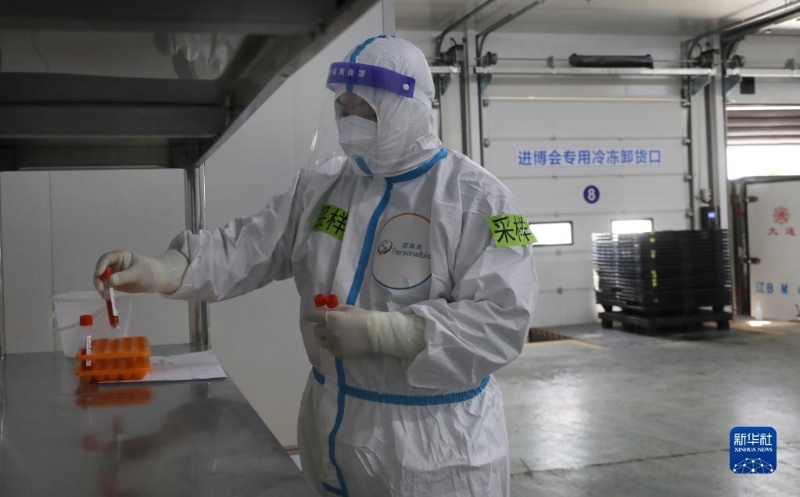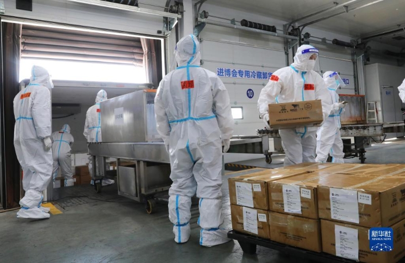 10月20日上午9點(diǎn),第五屆中國國際進(jìn)口博覽會(huì)的第一批進(jìn)口冷鏈?zhǔn)称氛蛊繁贿\(yùn)入總倉。在接下來的10天內(nèi),預(yù)計(jì)約100個(gè)全球參展商、3000箱冷鏈?zhǔn)称氛蛊?,將在總倉集中完成“最小包裝”消毒和核酸檢測。