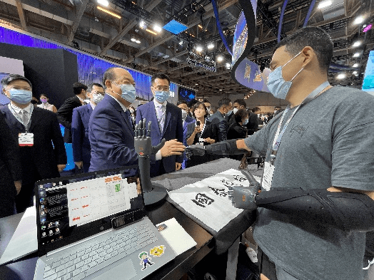 展會(huì)開啟第一天,澳門特別行政區(qū)行政長(zhǎng)官賀一誠(chéng)、中央人民政府駐澳門特別行政區(qū)聯(lián)絡(luò)辦公室副主任嚴(yán)植嬋、外交部駐澳門特別行政區(qū)特派員公署署理特派員王冬、浙江省人民政府副省長(zhǎng)盧山、澳門特別行政區(qū)立法會(huì)主席高開賢等出席了開幕式并參觀了展覽。澳門特首賀一誠(chéng)、浙江省副省長(zhǎng)盧山一行人來(lái)到BrainCo強(qiáng)腦科技展臺(tái),一下被一款“假手”吸引住目光,盧山副省長(zhǎng)和BrainCo強(qiáng)腦科技工作人員向特首介紹了“假手“的功能:一款用大腦控制、能隨意做任何動(dòng)作的智能仿生手??吹诫p臂佩戴仿生手的倪敏成自如地動(dòng)每一根手指,在場(chǎng)人員不禁鼓起掌來(lái)。