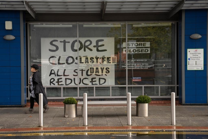 10月7日,在英國曼徹斯特,一名行人走過一家關閉的店鋪。新華社發(fā)(喬恩·休珀攝)