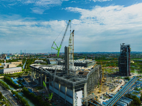9月27日10時,隨著1250噸履帶吊緩緩起勾,上海寶冶承建的寶山再生能源利用中心項目造型塔最后一榀拼裝單元吊裝順利完成,標志著135米造型塔鋼結構順利封頂。