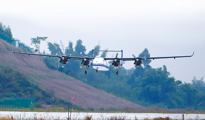 據(jù)了解,該型無人機(jī)是在騰盾科創(chuàng)的明星產(chǎn)品——“雙尾蝎”系列無人機(jī)平臺基礎(chǔ)上開發(fā)的新型支援保障型產(chǎn)品,是一款多用途、中空長航時固定翼無人機(jī)系統(tǒng)。該機(jī)翼展20米、機(jī)長10.5米、機(jī)高3.1米,最大起飛重量4.35噸、最大載重量1.5噸、最大裝載空間5立方米。4臺發(fā)動機(jī)和發(fā)電機(jī)配置,使得“雙尾蝎D”在保持“雙尾蝎”系列無人機(jī)既有優(yōu)勢的基礎(chǔ)上,具備了更大的裝載空間、更重的裝載能力、更強(qiáng)的用電支持和更高的系統(tǒng)可靠性與飛行安全性,可攜帶更多高性能的任務(wù)載荷,執(zhí)行貨運物流、航空播撒、任務(wù)載荷使用等支援保障任務(wù)。