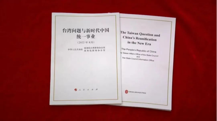 2022年8月,《臺灣問題與新時代中國統(tǒng)一事業(yè)》白皮書進(jìn)一步重申臺灣是中國的一部分的事實(shí)和現(xiàn)狀,展現(xiàn)中國共產(chǎn)黨和中國人民追求祖國統(tǒng)一的堅(jiān)定意志和堅(jiān)強(qiáng)決心,闡述中國共產(chǎn)黨和中國政府在新時代推進(jìn)實(shí)現(xiàn)祖國統(tǒng)一的立場和政策。