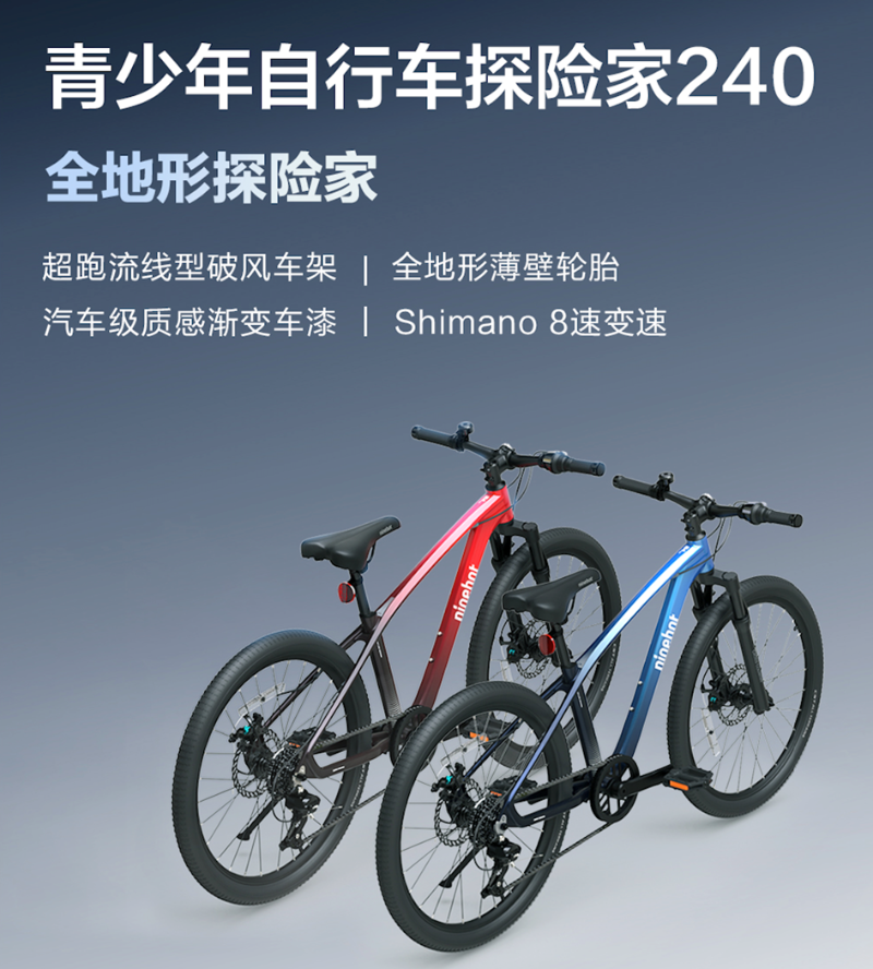 青少年骨骼不是成人縮小版,青少年自行車也不應(yīng)該只是縮小版的成人自行車。著眼于此,九號公司于10月24日舉辦的秋季新品發(fā)布會上,重磅釋放“九號青少年自行車探險家240”,下放大量高端技術(shù)設(shè)計,為兒童創(chuàng)造更高標(biāo)準(zhǔn)的騎行體驗。體驗夠出色,才能沉浸享受風(fēng)景;性能夠出眾,才能不負(fù)“全地形探險家”之名。