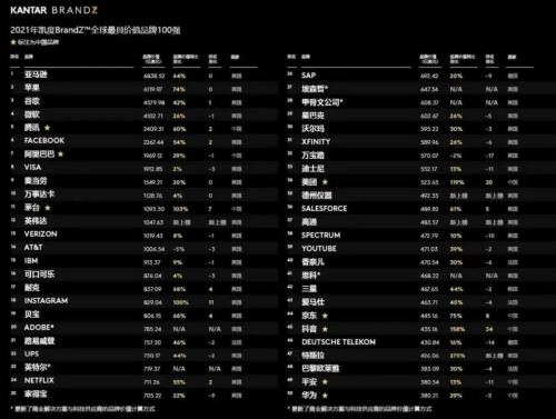 據《2021 BrandZ最具價值全球品牌排行榜》顯示,在全球最具價值品牌100強中,上榜的中國品牌數量達到了18個,其中多個品牌為首次上榜,八個品牌實現了排名提升,在增速方面,中國品牌表現尤其亮眼。
