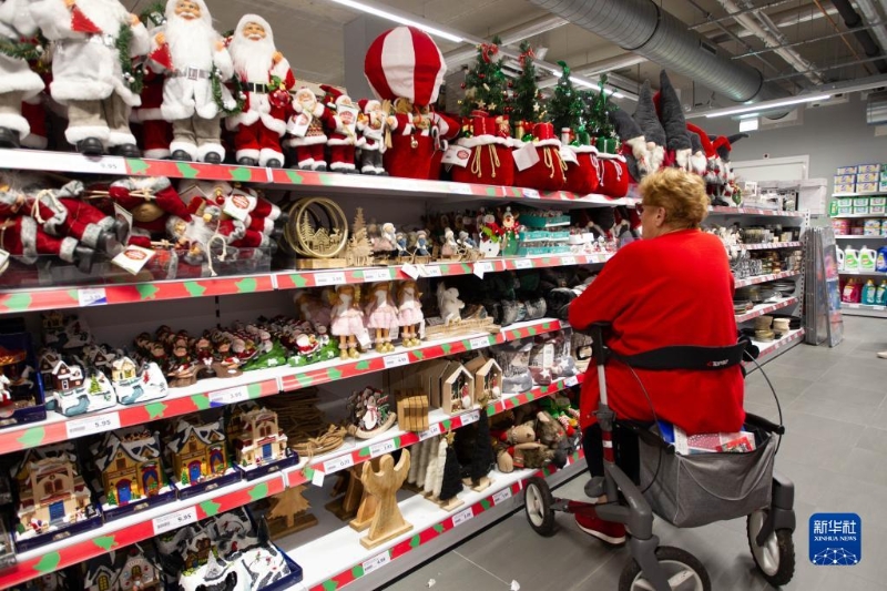10月29日,在荷蘭哈勒姆的一家超市,顧客選購中國制造的圣誕商品。