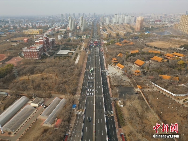 10月30日,齊齊哈爾市民航橋正式建成通車,該橋也是中國(guó)高寒地區(qū)目前已建成的跨度最大、噸位最重連續(xù)梁橋。圖為已正式通車的齊齊哈爾市民航橋。(無(wú)人機(jī)照片) 中新社發(fā) 周博 攝