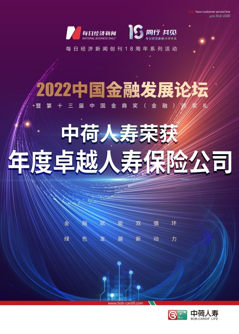 10月28日,由每日經(jīng)濟(jì)新聞報(bào)社主辦的2022年度中國(guó)金融發(fā)展論壇暨第13屆金鼎獎(jiǎng)?lì)C獎(jiǎng)盛典如期舉辦。中荷人壽獲得金鼎獎(jiǎng)評(píng)選委員會(huì)廣泛認(rèn)可,榮獲 “年度卓越人壽保險(xiǎn)公司”獎(jiǎng)項(xiàng)。