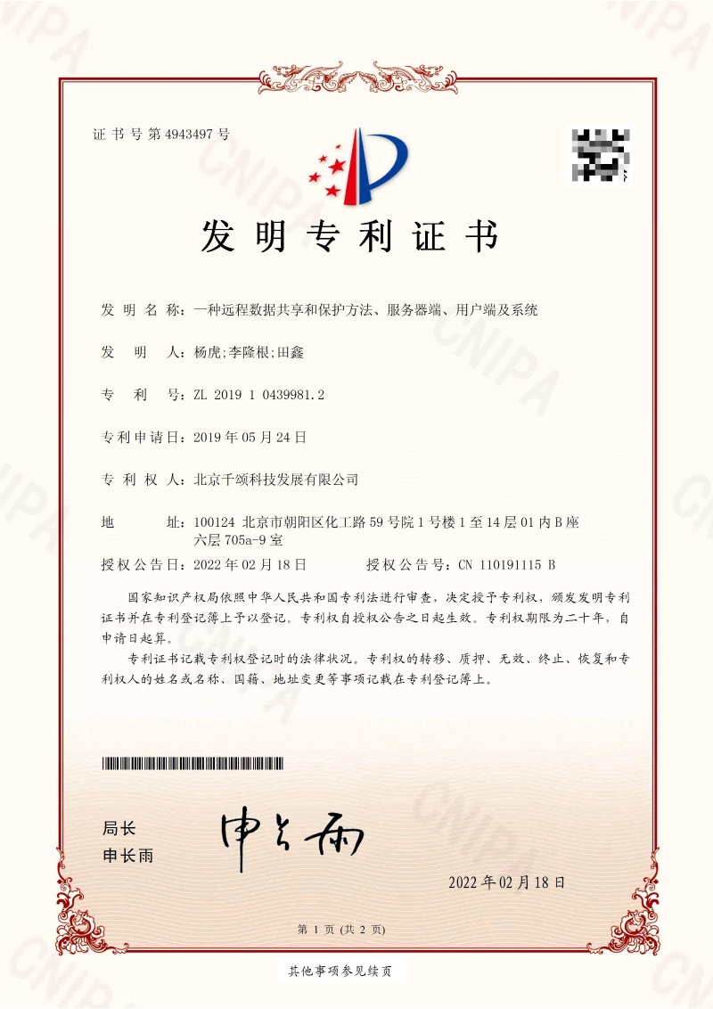田鑫的發(fā)明專利《一種遠(yuǎn)程數(shù)據(jù)共享和保護(hù)方法、服務(wù)器端、用戶端及系統(tǒng)》便很好地解決了上述“痛點(diǎn)”。和當(dāng)前的技術(shù)相比,該發(fā)明專利創(chuàng)新性地通過用戶端和服務(wù)器端簽署智能合約來達(dá)成數(shù)據(jù)共享協(xié)議,服務(wù)器端根據(jù)智能合約管理數(shù)據(jù)共享,提供數(shù)據(jù),從而降低雙方溝通成本,在提高數(shù)據(jù)共享效率的同時,也為數(shù)據(jù)安全增添了一道堅(jiān)固的“屏障”。此次,被評為“科技創(chuàng)新優(yōu)秀發(fā)明成果獎”,獲得權(quán)威專家們的一致肯定,無疑是對該發(fā)明專利“含金量”的有力證明。