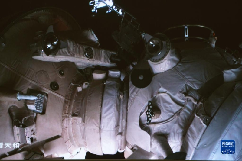 11月1日在北京航天飛行控制中心拍攝的空間站夢天實(shí)驗(yàn)艙與空間站組合體在軌完成交會(huì)對(duì)接。這是夢天實(shí)驗(yàn)艙對(duì)接鎖鎖緊完成。新華社發(fā)(孫豐曉 攝)