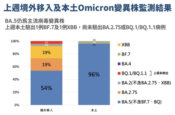 羅一鈞表示,上周共完成165例病毒基因定序,其中有139例為本土個(gè)案、29例境外移入,本土個(gè)案中仍有134例為BA.5,占比達(dá)96%,其他則包含3例BA.2,以及本土首見(jiàn)的BF.7、XBB各1例。